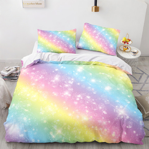 Üç parçalı gökkuşağı serisi 100% Polyester 200TC avrupa amerikan tarzı fabrika doğrudan ev yatak seti nevresim yatak çarşaf kılıfı