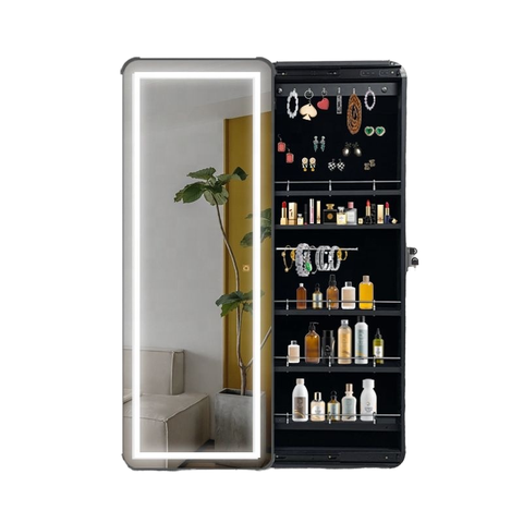 Tam uzunlukta ayna ambalaj depolama dolabı depolama raf bir görünmez akıllı LED gizli duvara monte tam uzunlukta ayna